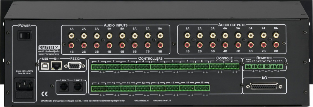 Multizone Paging Matrix Musiksystem, Matrix für 16 Zonen, 16 Audioeingänge, 16 Zonenausgänge, konfigurierbar als Mono oder Stereo, Anschluss für 2 Paging-Panels MPC16A, inkl. vierfachem DAB+ / FM Tuner mit 50 Presets + WEB-Radio