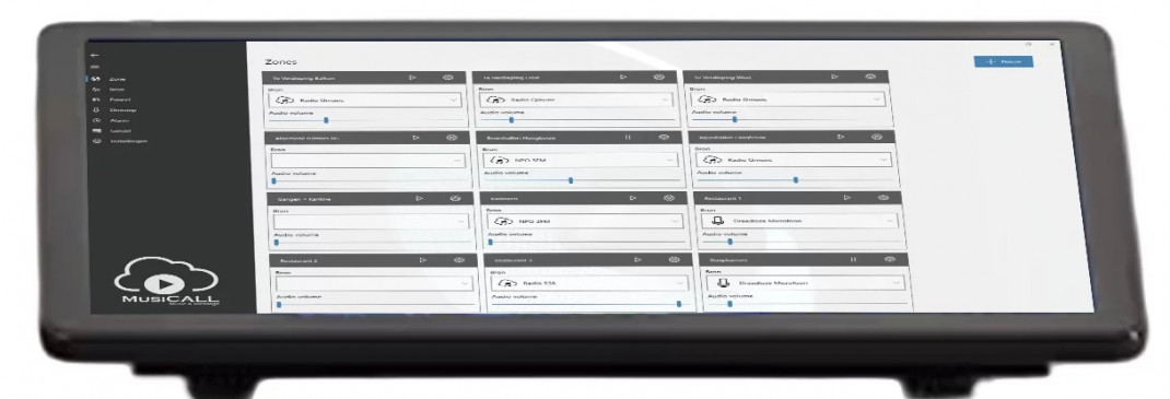 MusiCALL Music & Message Hauptgerät / Durchsagekonsole in Kombination mit Mikrofon, 4 (Dante) Zonenausgänge, 10 Zoll Touchscreen, doppelter LAN-Anschluss