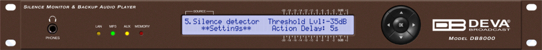 Das beste Gerät zur Bekämpfung des gefürchteten Dead-Air-Problems ist der DB8000 von DEVA Broadcast Ltd. Es wurde entwickelt und gebaut, um einfach, flexibel, zuverlässig und leicht in bestehende Setups zu integrieren zu sein: von einer einzelnen Station bis hin zu großen Funknetzwerken. Das Grundprinzip des DB8000 besteht darin, dass dieses Gerät die Stille erkennen und die Wiedergabe einer zuvor erstellten Playlist auf dem eingebauten MP3-Player starten kann.