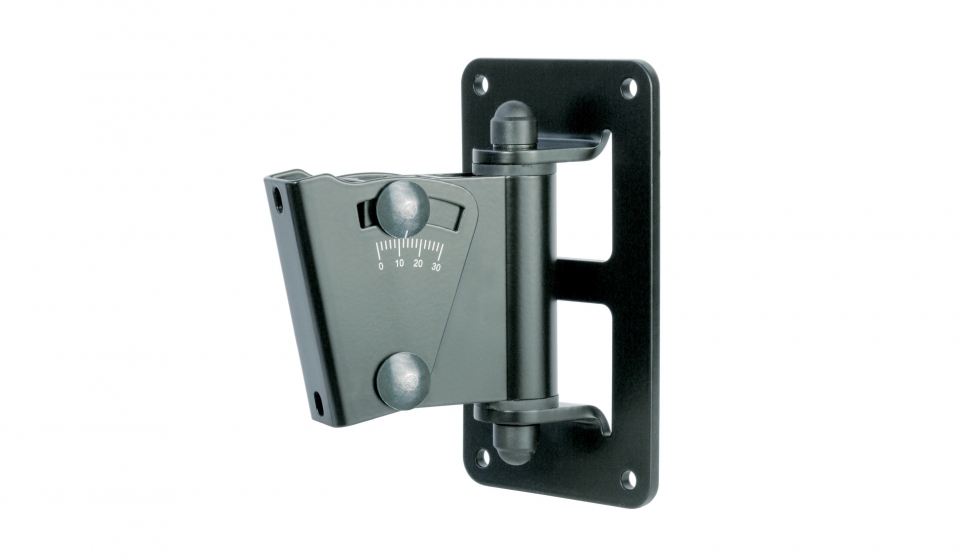 Vielseitig einsetzbare Wandhalterung für Lautsprecherboxen. Die montierte Box kann seitlich geschwenkt und bis 30° geneigt werden. Einfache Montage durch praktisches Einhängen und Verschrauben.
