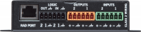 - 2 Logikein- und -ausgänge bilden die Schnittstelle zwischen anderen Geräten und HAL mit Umschaltern oder Befehlen, wie z.B. Push-to-Talk oder Stummschaltern, Projektoren, Leuchten, Alarmen usw.