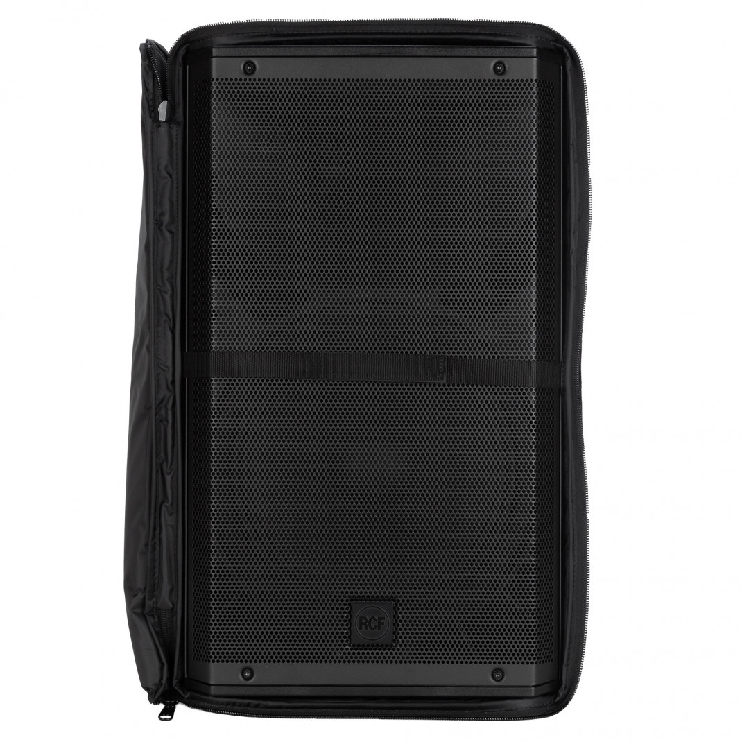 Gepolsterte Hülle für die ART 9 Serie 15“ Modelle. Sie besteht aus strapazierfähigem, wetterfestem Polyester-Außenmaterial, Schaumgummipolsterung und Reißverschlussöffnungen mit Klettverschlüssen. Die Frontabdeckung kann geöffnet und auf einer Seite mit Klettverschluss verschlossen werden. Sie verfügt über mehrere Öffnungen für Griffe, für das hintere Anschlussfeld und für die Masthalterung.MERKMALE
