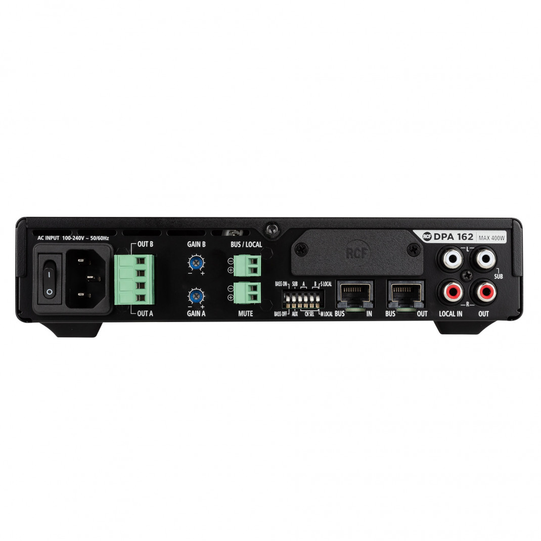 Die DMA 162P ist eine 2-Kanal-Class-D-Endstufe mit leistungsstarker DSP. Die DMA 162P wurde als Erweiterung der DMA Matrix-Endstufen entwickelt, um die Gesamtleistung des Systems zu erhöhen und Mehrraum-Anwendungen für kommerzielle Audiosysteme zu ermöglichen. Dank ihrer umfassenden Steuerungs- und Anpassungsmöglichkeiten und flexiblen Eingänge kann sie jedoch auch im Stand-alone-Betrieb verwendet werden. Aufgrund ihrer extrem kompakten Maße, der präzisen Konstruktion und Zuverlässigkeit eignet sie sich für verschiedenste Anwendungen im professionellen Musikbereich.MERKMALE