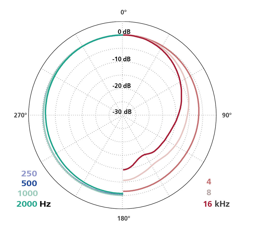 - mäßige Höhenanhebung kompensiert Höhenverluste, die durch einen größeren Diffusfeldanteil bei Einsatz nahe des Hallradius auftreten
