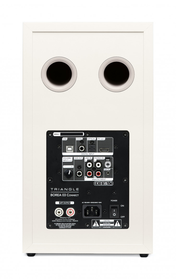 Der Class-D-Verstärker mit 2x60 Watt, der 16-cm-Triangel-Lautsprecher aus 100% natürlichem Zellstoff und der 25-mm-Seidenkalotten-Hochtöner sorgen für einen linearen Frequenzgang, der perfekt beherrscht wird.