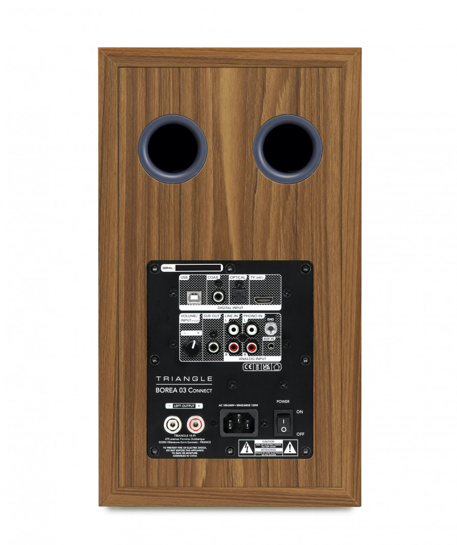 Der Class-D-Verstärker mit 2x60 Watt, der 16-cm-Triangel-Lautsprecher aus 100% natürlichem Zellstoff und der 25-mm-Seidenkalotten-Hochtöner sorgen für einen linearen Frequenzgang, der perfekt beherrscht wird.