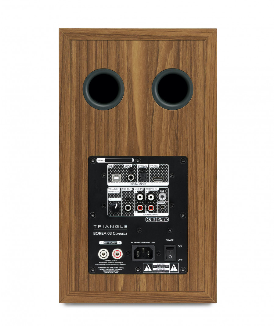 Der Class-D-Verstärker mit 2x60 Watt, der 16-cm-Triangel-Lautsprecher aus 100% natürlichem Zellstoff und der 25-mm-Seidenkalotten-Hochtöner sorgen für einen linearen Frequenzgang, der perfekt beherrscht wird.