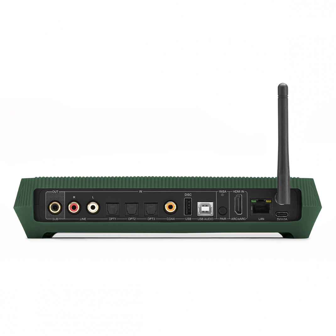 Die Audioübertragung zu den Lautsprechern erfolgt drahtlos über die WiSA-Technologie, die eine stabile Wiedergabe in hoher Auflösung ohne wahrnehmbare Latenz gewährleistet.