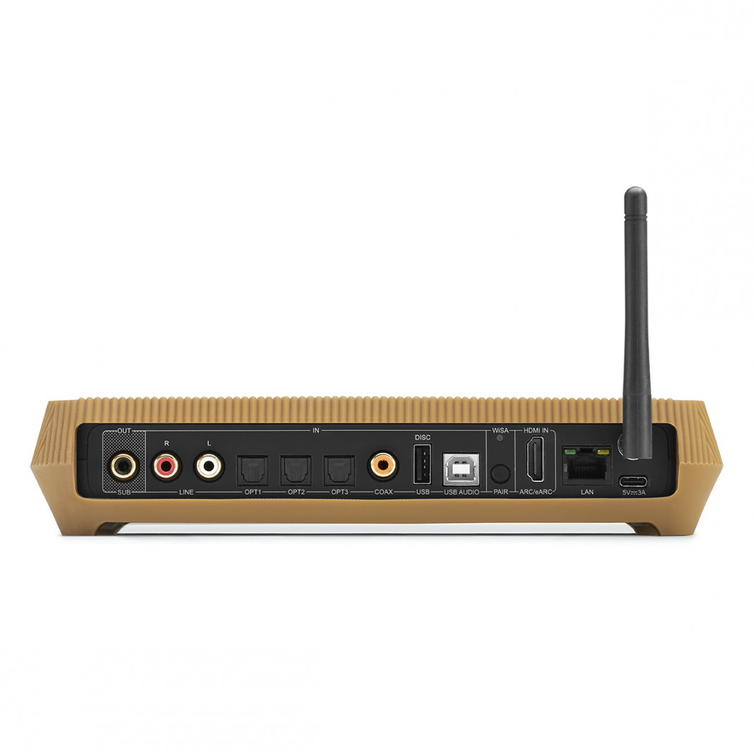 Die Audioübertragung zu den Lautsprechern erfolgt drahtlos über die WiSA-Technologie, die eine stabile Wiedergabe in hoher Auflösung ohne wahrnehmbare Latenz gewährleistet.