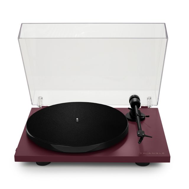 Pro-Ject Riemen-Plattenspieler mit 33 und 45 Umdrehungen, Ortofon OM-5E Tonabnehmer, Burgunderrot
