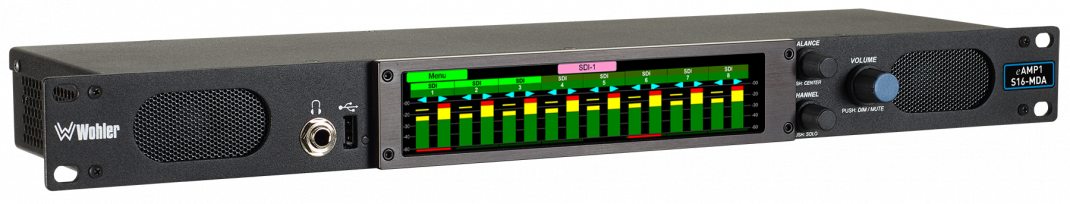 - Gleichzeitige Pegelmessung von 16 de-embedded Audiokanälen von SDI-Eingang, AES oder analogen Quellen
