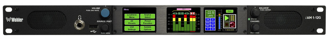 1RU Triple screen, 16 channel Dual Input, 12G/3G/HD/SD-SDI, Audio Monitor with touch screen control. Includes a pair of analog Inputs and outputs on XLR. Loudness, phase monitoring and up to 64 presets.