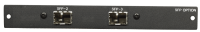 - Optionskarten: Wählen Sie zwischen AoIP, zusätzlichen 8 Kanälen für analoge Ein- und Ausgänge, 2 zusätzlichen SFP-Käfigen oder einer 12G/MAVRIC-Optionskarte.