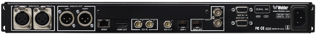 Zur Standardausstattung gehören 3G-SDI und ein Paar analoge Ein- und Ausgänge. Andere Signalformate und Verarbeitungsoptionen können je nach Bedarf aufgerüstet bzw. lizenziert werden, entweder bei der Erstausstattung oder nach dem Kauf. Zu den Optionen für zusätzliche Signale gehören DanteTM oder RavennaTM (mit Unterstützung von Hitless 2022-7), SMPTE-2110, SMPTE-2022-7, AES3 und MADI.