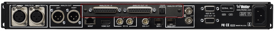 Enable monitoring of 8 Analog channels on DB-25. Hardware card with software activation key, includes Optical TOSLINK Input
