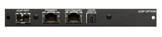 Diese optionale Hardwarekarte ermöglicht die Überwachung über einen 64-Kanal-Dante™-Eingang. Sie wird mit einem Aktivierungsschlüssel geliefert und ist Plug-and-Play. Sie umfasst eine AoIP-Karte, die primäre und sekundäre RJ-45-Anschlüsse für Hitless/2022-7-Unterstützung (für Dante- und 2110-30-Signale) ermöglicht. Ein Gigabit-SFP-Käfig, der Multi-Mode- und Single-Mode-Netzwerk-SFP's für AoIP-Signale ermöglicht, ist enthalten.Zusätzlich kann diese Optionskarte entweder mit einem optischen TOSLINK-Eingang (829171) oder mit zwei unsymmetrischen analogen Eingängen (829171-1) bestellt werden.