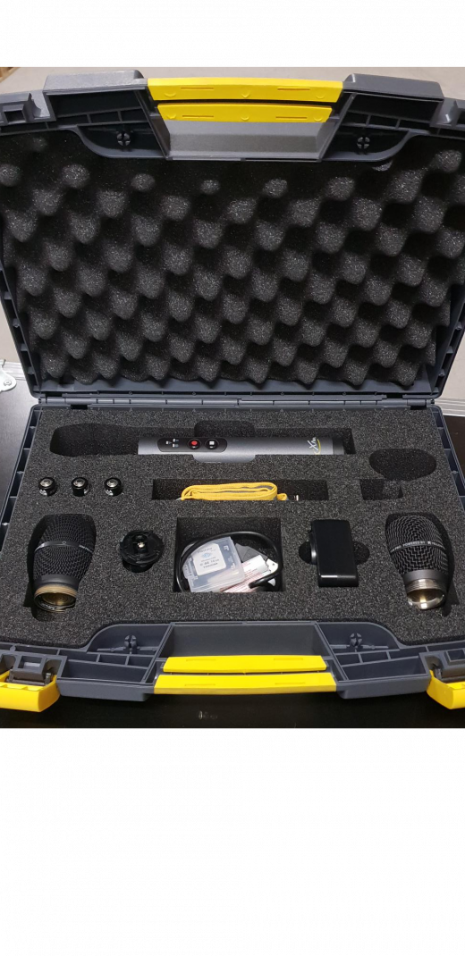 Ein Set bestehend aus einem Mikrofonkörper mit diversem Zubehör und zwei Kapseln :