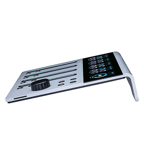 Die Grundelemente der Control Unit sind ihre vier G-Touch© Fader. Hinzu kommen das Multitouch Widescreen Display und ein Drehregler für alle notwendigen Einstellungen. Mit dem G-Touch© Fader hat Yellowtec eine völlig neue Fader-Technologie geschaffen, die die Vorzüge aller bereits existierenden Fader-Typen auf eine ganz neue Weise kombiniert. Erhalte haptisches Feedback und eine physische Orientierung, wenn du deine Finger durch die Vertiefung des Faders gleiten lässt. Nutze die Möglichkeit, Fader an voreingestellte Positionen zu bewegen und greife auf unterschiedliche Fader Modes und LED Anzeige-Optionen zurück.