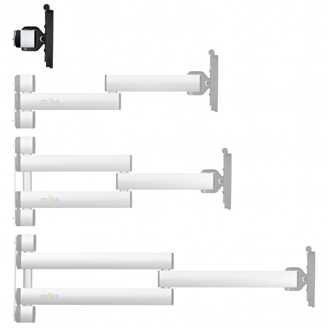 Der m!ka Monitorarm XS ist die kleinste verfügbare Version. Wenn Sie nur eine geringe Variabilität Ihrer Monitoranordnung benötigen, ist er die perfekte Wahl für Sie. Wählen Sie den m!ka Monitorarm XS, um Arbeitsbereiche zu gestalten, in denen der maximale Verstellbereich des Monitors nur bis zu 10,5 cm beträgt.Verwenden Sie den m!ka Monitorarm XS, um einen Monitor mit einem Gewicht von bis zu 15 kg zu montieren. Ausgestattet mit einem QuickFix-Adapter für VESA75- und VESA100-Halterungen führt die korrekte Einstellung von nur wenigen Schrauben zu einer sicheren Befestigung des Monitors entsprechend seinem Gewicht und in jeder Position, in die Sie ihn ziehen.