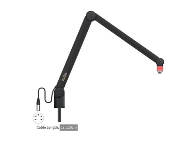 m!ka CamArm schwarz mit zweifarbiger OnAir-Anzeige mit montiertem XLR-Stecker, schwarz