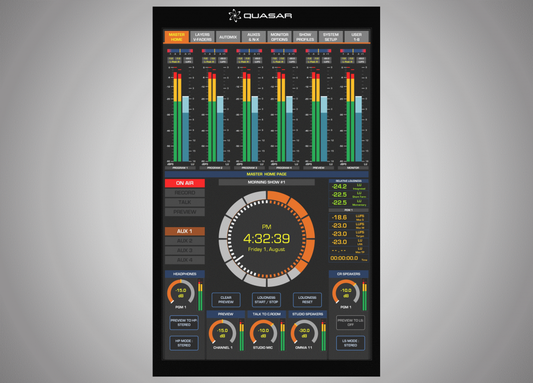 La gestion des DPS (filtre, gate, eq, compresseur, limiter, des shows, des I/O et plus encore et entièrement réalisée depuis ce module. Les vues sont contextuelles en fonction des désires de l'utilisateur (I/O, routage, phone, insert etc.)