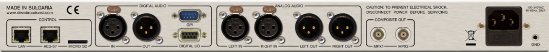 - Entrées et sorties analogiques G/D et deux sorties MPX composites indépendantes.