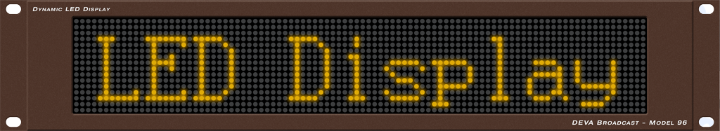 Capable d'afficher les messages génériques, l'afficheur dynamique à LED modèle 96 peut être utilisé à des fins de publicité et de notification. Les panneaux peuvent également être connectés à un décodeur RDS/RBDS ou à d'autres équipements de mesure pour afficher les résultats des mesures. Ceci, ainsi que le montage en rack 2U, fait de l'afficheur à LED un complément parfait aux studios et salles de contrôle des stations ou aux salles d'exposition où une grande visibilité est souhaitée.Le DEVA LED est livré avec des interfaces de contrôle RS232 et USB. Des boutons souples permettant le contrôle manuel de la luminosité réglable à plusieurs niveaux ont été placés à l'arrière des écrans. Contrôlé par un logiciel facile à utiliser, l'affichage LED peut être programmé sans effort. Le logiciel est fourni gratuitement et permet de créer, d'éditer ou de réviser des textes. Le contrôle par PC permet à l'utilisateur d'effectuer des mises à jour variables sur un message pour une mise à jour des données en temps réel. L'affichage dynamique à LED prend en charge les alphabets cyrillique et latin, les symboles de base et les graphiques. Le logiciel permet de créer jusqu'à 10 messages prédéfinis et 4 logos/images supplémentaires. La vitesse de défilement, la luminosité, l'effet et le temps d'affichage sont réglés individuellement pour chaque message. Les messages peuvent être affichés dans l'ordre, individuellement ou selon les préférences de l'utilisateur.