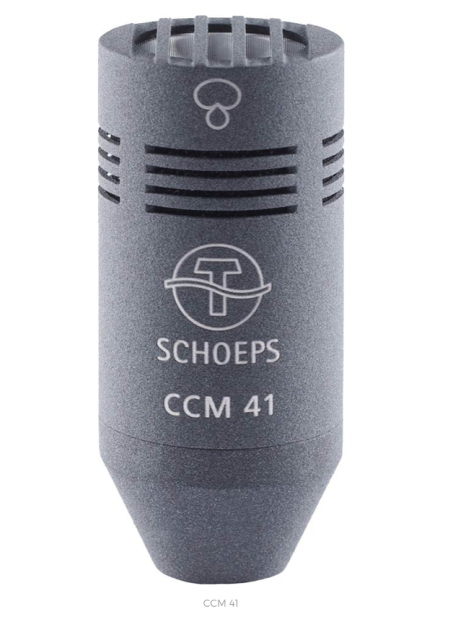 Le CCM 41 est fortement directionnel. Les sons diffus provenant de la pièce sont encore plus atténués par elle que par les cardioïdes. Le son est donc plus "sec", sa sensibilité à l'effet Larsen acoustique est plus faible que celle de tout autre type de capsule SCHOEPS, à condition qu'un haut-parleur ne rayonne pas directement par l'arrière.La directivité est très indépendante de la fréquence, de sorte que même les sons incidents obliques et diffus sont transmis sans coloration et donc "naturellement", même à une distance importante de la source sonore. C'est un véritable avantage par rapport aux microphones canon dont la directivité basée sur l'interférence n'est notablement supérieure à celle de la supercardioïde qu'à des fréquences élevées et dont la réponse en fréquence et l'image sonore dépendent donc de la direction d'incidence.