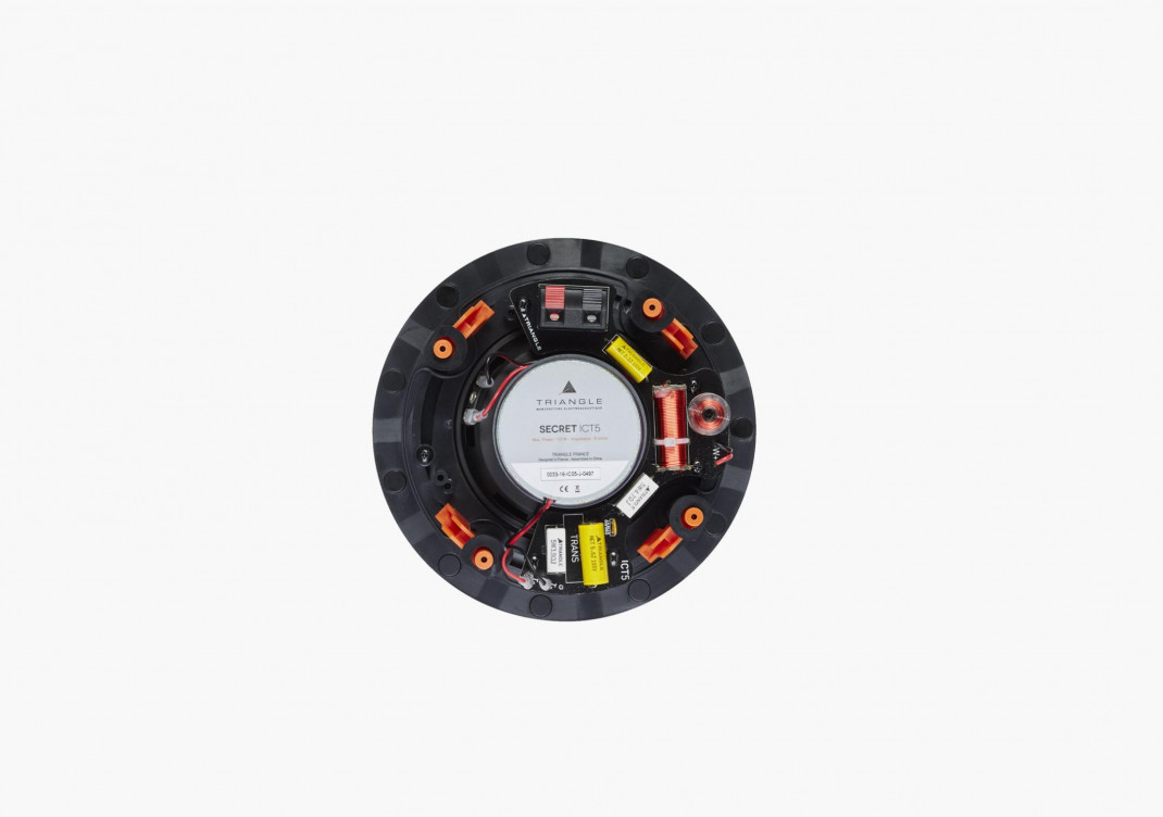 L'ICT5 est une enceinte circulaire équipée d’un haut-parleur de 130mm et d’un tweeter orientable à dôme de soie de 20mm pour un diamètre total de 216mm.