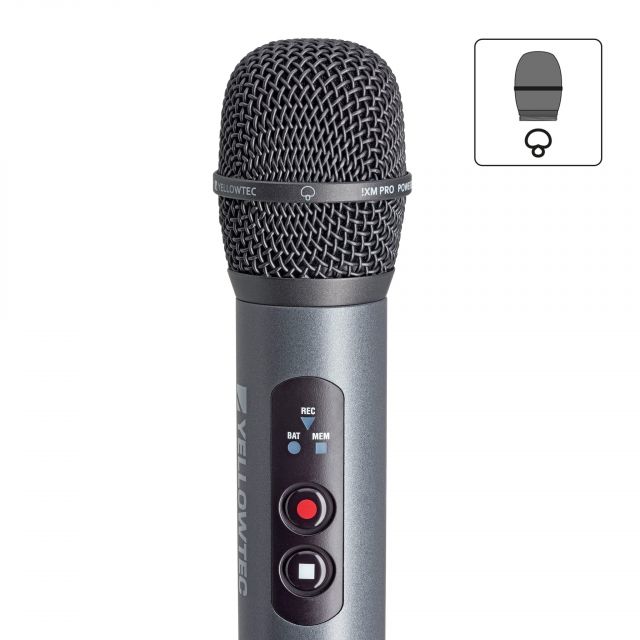 iXm Pro Reporter Microphone with built-in Recorder, Yellowtec super cardioïd capsule included, Line in, Headphone out, USB mini, exchangeable SD card, Li-Ion accumulator, compartment for 3 x AA batteries. 2GB SD Card included.