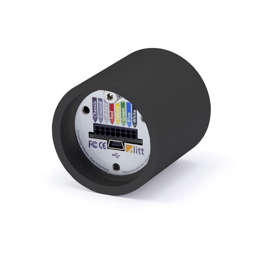 Choisissez un contrôleur de base litt comme élément de base de votre dispositif de signalisation litt si vous voulez monter votre litt sur votre bureau, sur un poteau ou au plafond. Mélange jusqu'à cinq segments de couleur de différentes couleurs et tailles et place-les sur le contrôleur de base. Tu peux aussi ajouter un segment sonore sur le dessus. Fixe la manette de base sur des surfaces telles que des bureaux ou place-la sur une barre de soutien ou une perche du système m!ka pour la soulever. Choisissez une suspension plafonnière pour fixer litt à votre plafond.Le contrôleur de base de litt est équipé d'une reconnaissance automatique des segments de couleur de litt, d'entrées de commande individuelles pour chaque couleur (2,4-24 VDC) et d'une protection contre les inversions de polarité. Son panneau de connexion se compose d'un bornier à 8 broches et d'une prise mini-USB. Toutes les pièces de connexion sont situées à l'intérieur, ce qui lui confère un aspect extraordinairement élégant.